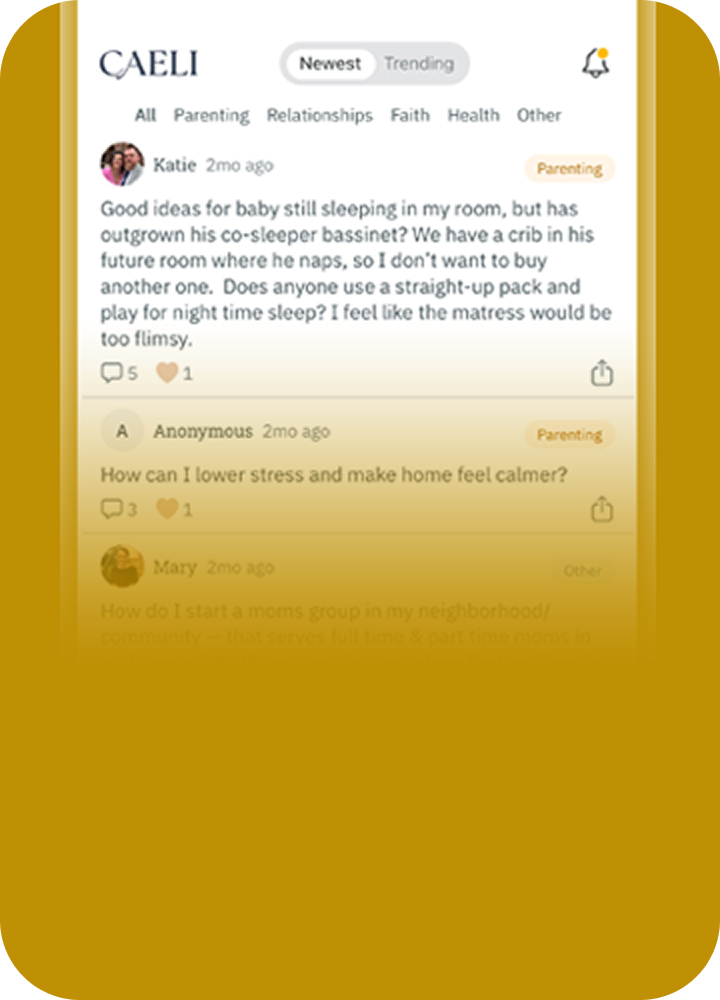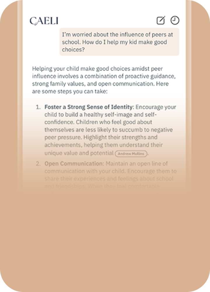 Caeli is an intelligent platform designed by mothers for mothers, to help you find expert answers to your hardest questions.